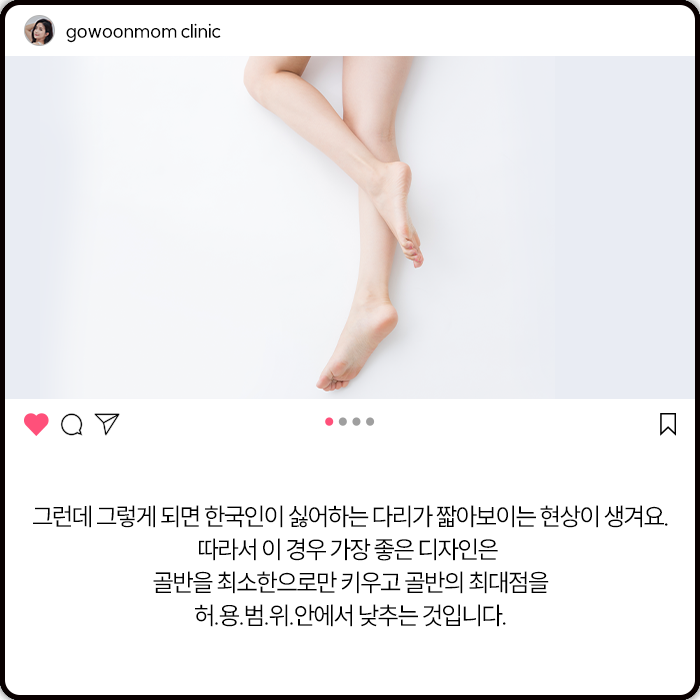 그런데 그렇게 되면 한국인이 싫어하는 다리가 짧아보이게 되는 현상이 생겨요.