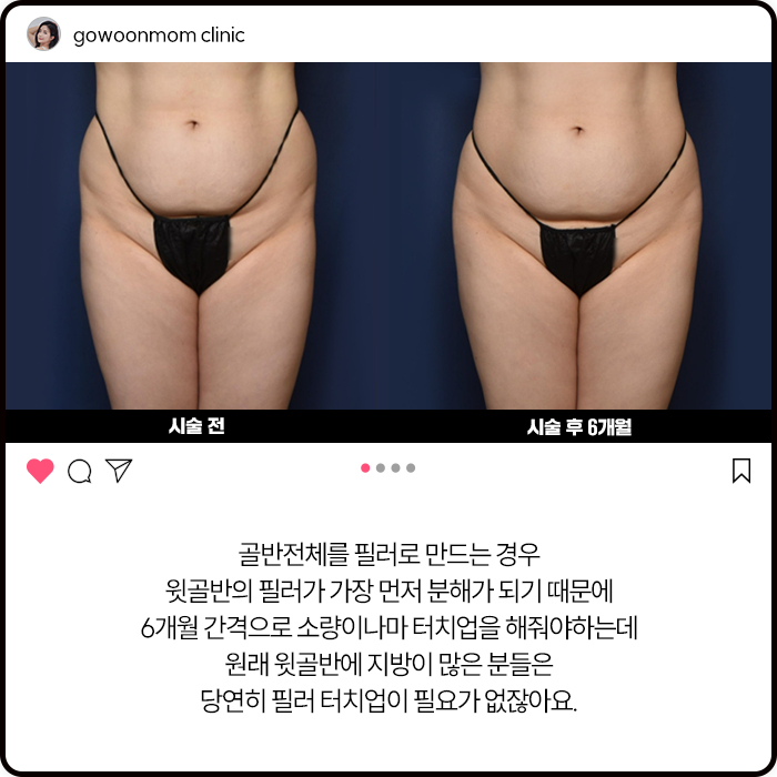 윗골반의 필러가 가장 먼저 분해가 되기 때문에 6개월 간격으로 소량이나마 터치업을 해줘야하는데