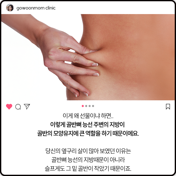 이렇게 골반뼈 능선 주변의 지방이 골반의 모양유지에 큰 역할을 하기 때문이예요.