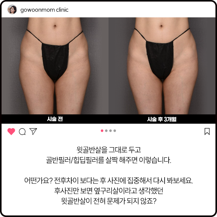 원래 윗골반에 지방이 많은 분들은 당연히 필러터치업이 필요가 없잖아요.